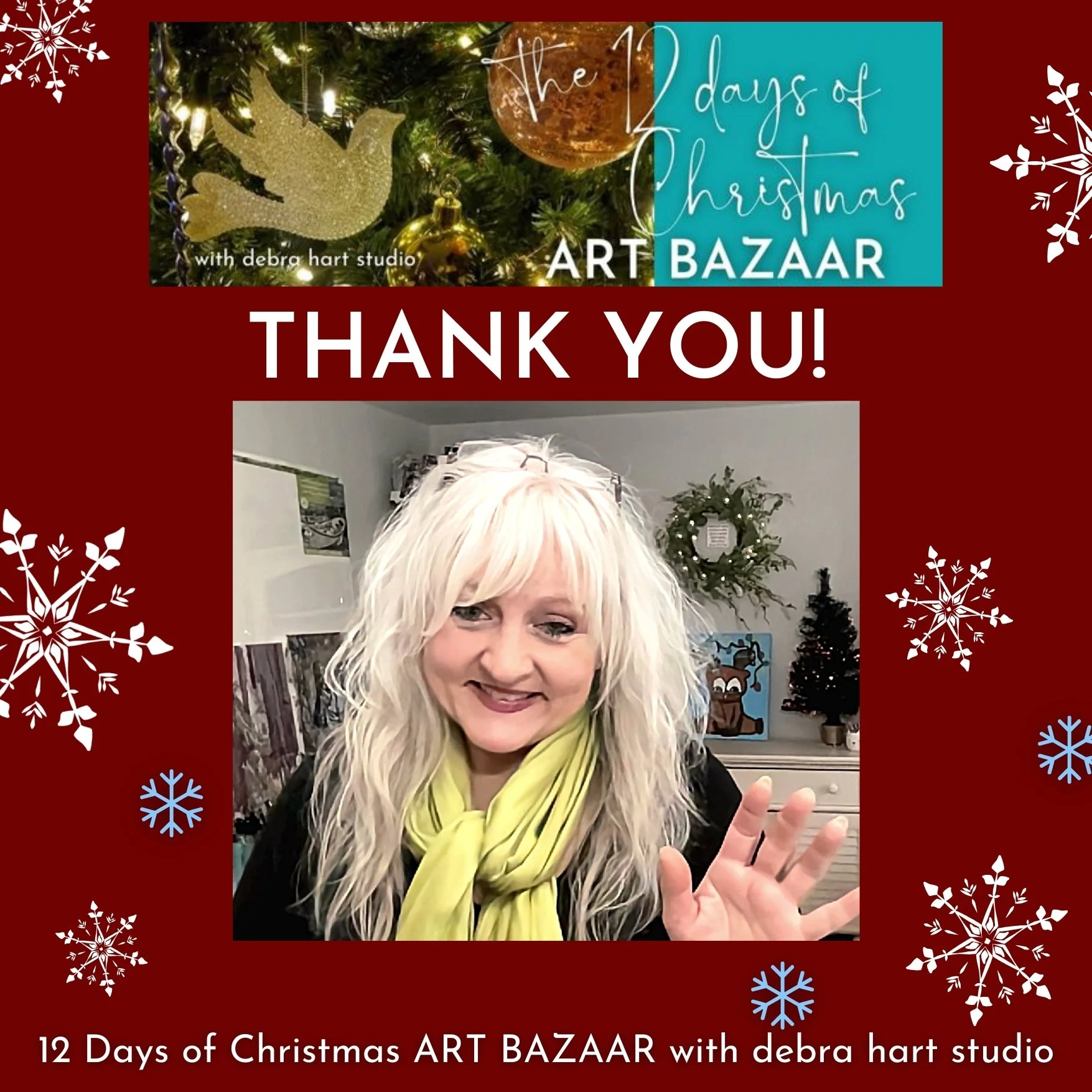 Join oil and mixed media artist Debra Hart of Debra Hart Studio for an online event! The 12 Days of Christmas Art Bazaar will be held December 2 - 13, 2022. Each day will have a new product available - everything from art cards to online courses to works on canvas and more. Special pricing on everything - and I only do this every 2-4 years, so sign up below to get on the email list for ADVANCE notification before items hit social media!